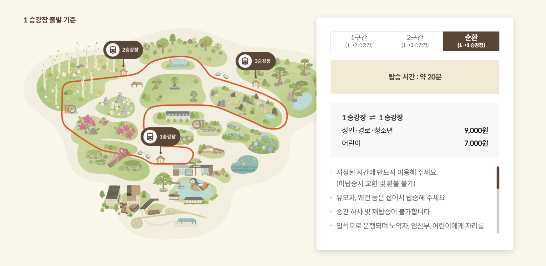 약 20분간의 탑승으로 화담숲의 다양한 경관을 즐길 수 있습니다.